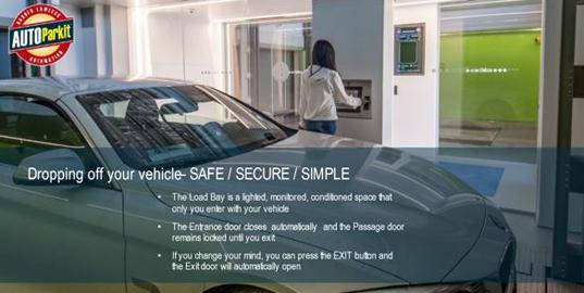 Unlike using a conventional garage, drivers do not have to be bothered remembering what floor they parked. They do not need to worry about walking up steps or taking elevators. They do not need to locate their parked car on the level. They instruct their mobile device or use a kiosk to retrieve their vehicle. In the Garage Lobby, a screen displays your request in the queue, and this info is duplicated in your mobile device. The screen will alert which load bay your car is arriving and once it has been delivered. Your vehicle is entirely untouched, delivered to a well-illuminated load bay. Only the owner can unlock the Load Bay passage door using the Mobile APP or the load bay kiosk.