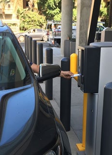 Key Fob Readers (shown above) or Bar Code Readers can be placed on exterior walk-paths, adjacent buildings or on campus to allow a user to conveniently request their vehicle. These Wireless Remote Retrieve Kiosks connect to AUTOParkit™.